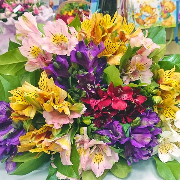 Роскошная охапка альстромерий с вкраплениями зелени придется по душе активным, жизнелюбивым, целеустремленным девушкам. Букет идеален в качестве презента за какие-то жизненные заслуги – окончание учебного года, защита диплома, повышение по карьерной лестнице, рождение ребенка. Альстромерия считается жизнестойким цветком, она имеет свойство распускать бутоны даже в срезанном состоянии.