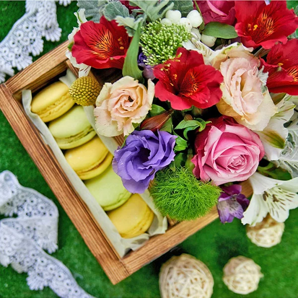 Лаура - цветочный ящик с макарунами