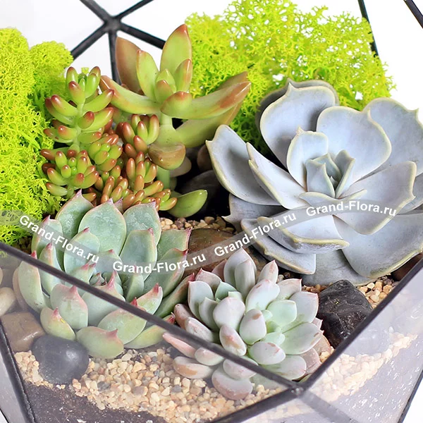 Стандартный: флорариум,эхеверия, крассула, седум, семпервивум.