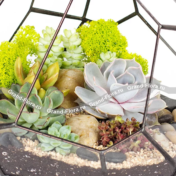 Стандартный: флорариум, эхеверия, крассула, седум, семпервивум.